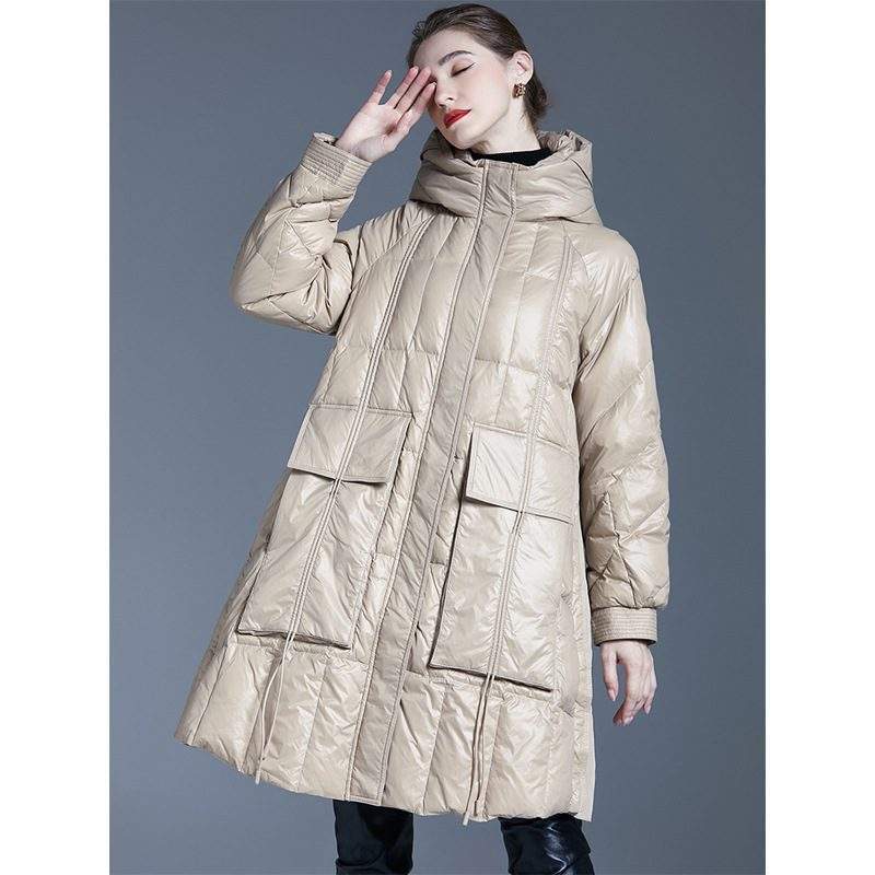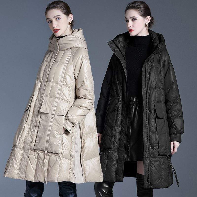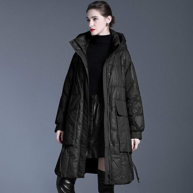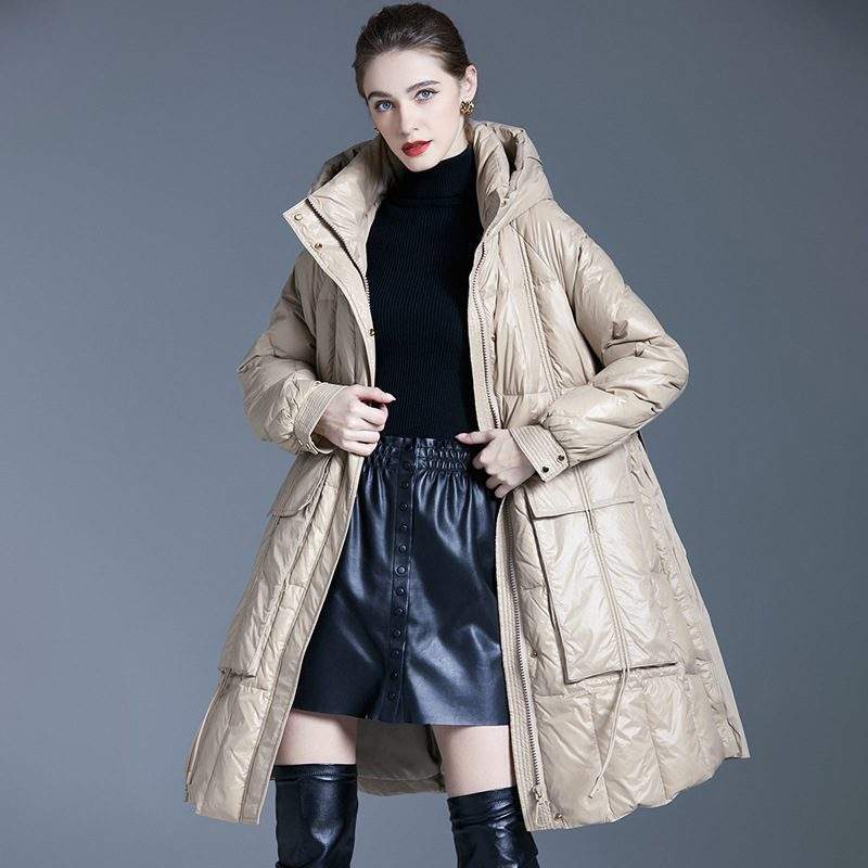 Ideal for everyday wear and outdoor adventures, this long 90% white duck down-filled puffer coat for women is the perfect combination of style, comfort, and warmth. Embrace the winter season in style with this fashionable and functional outerwear essential.