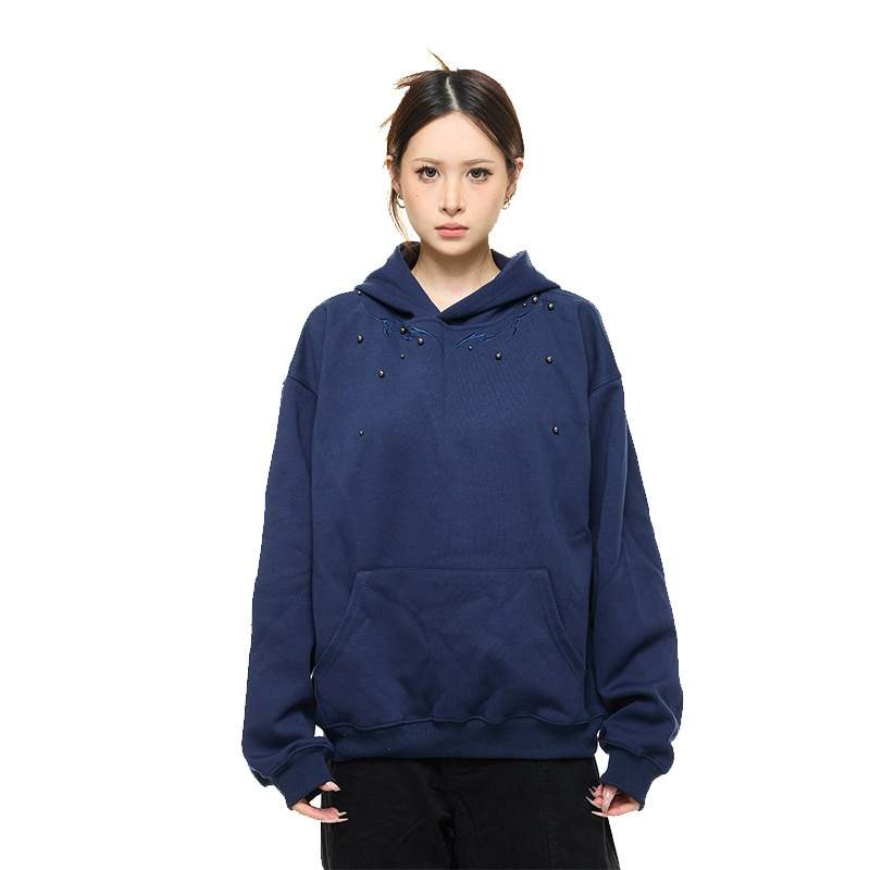 This beaded embroidered hooded sweatshirt for women blends delicate detailing with everyday comfort. Featuring elegant bead embellishments and embroidered accents, it adds a refined touch to a classic hoodie design. The loose fit silhouette offers comfort and versatility for all body types.