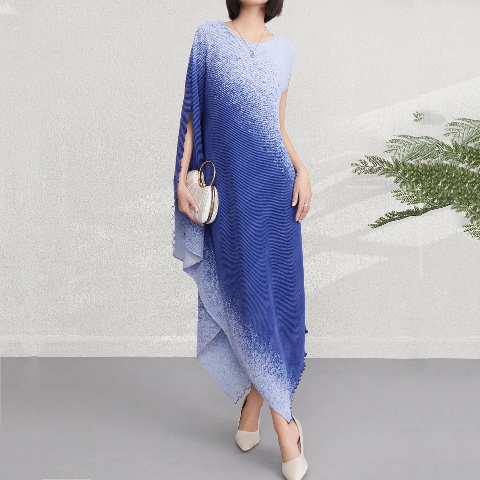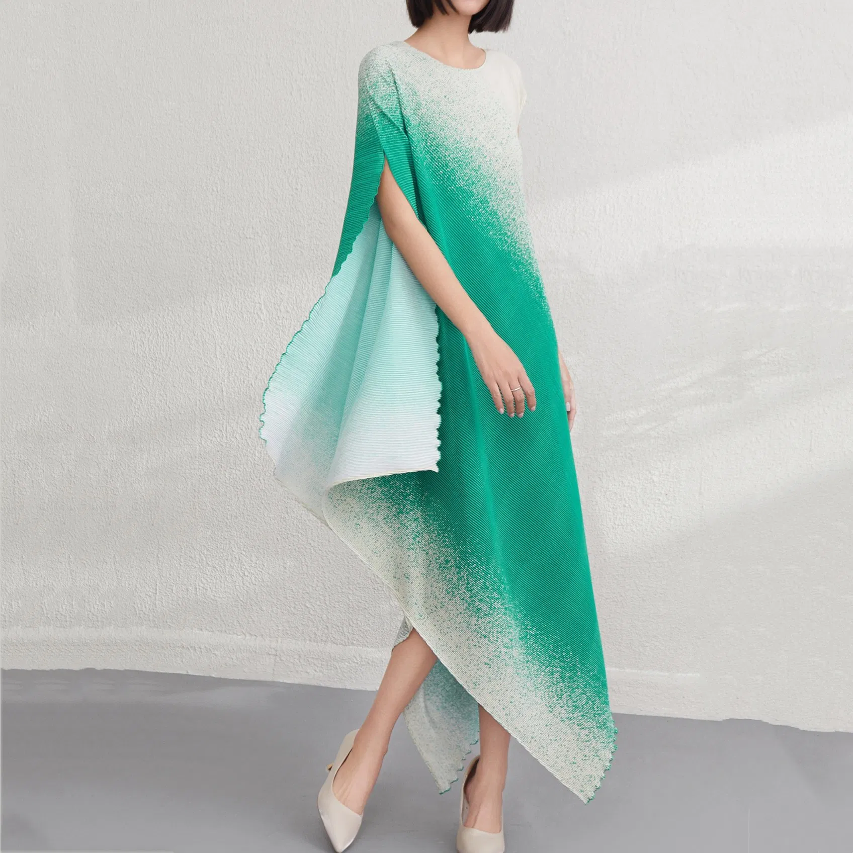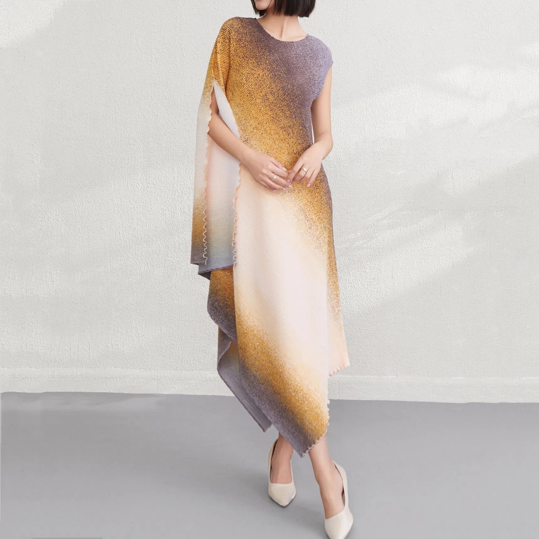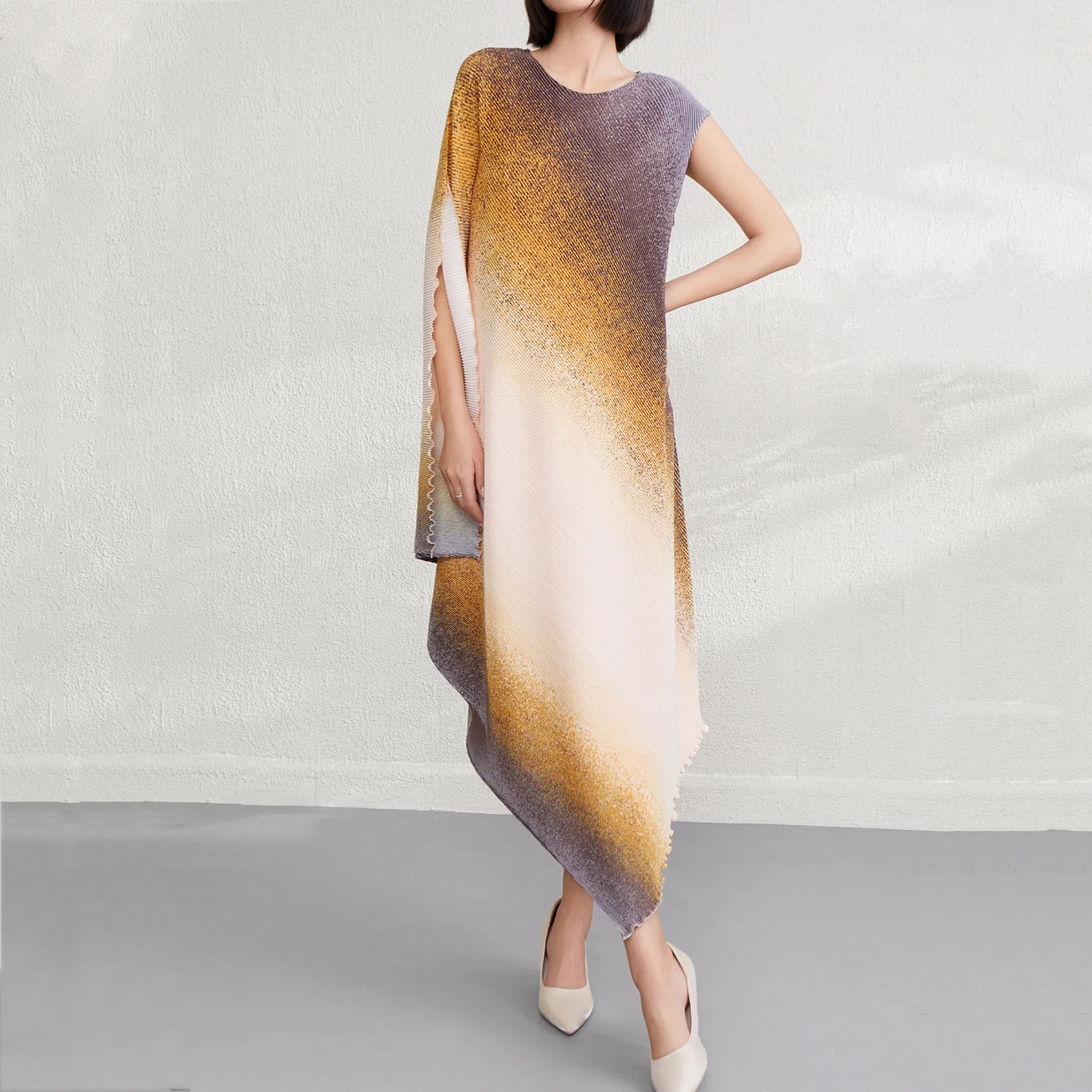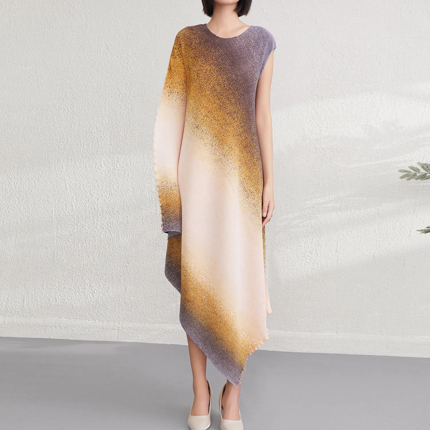 Customizable Irregular Gradient Dress 2025 Summer Miyake New Loose Long Skirt