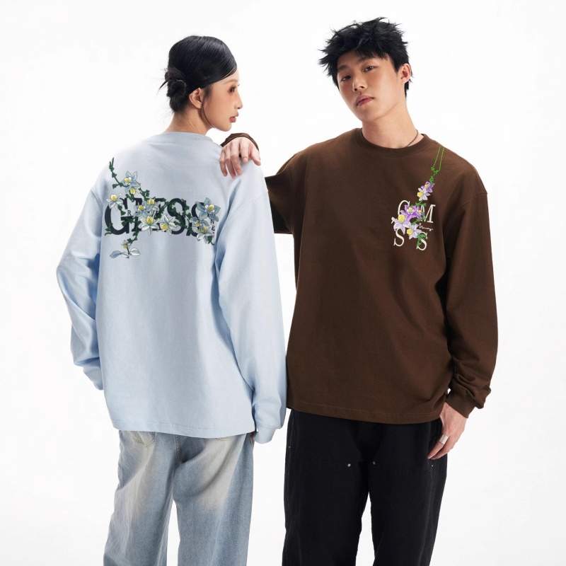 Embroidered Cotton Long Sleeve T-Shirt – Spring Loose Fit Women’s Casual Top