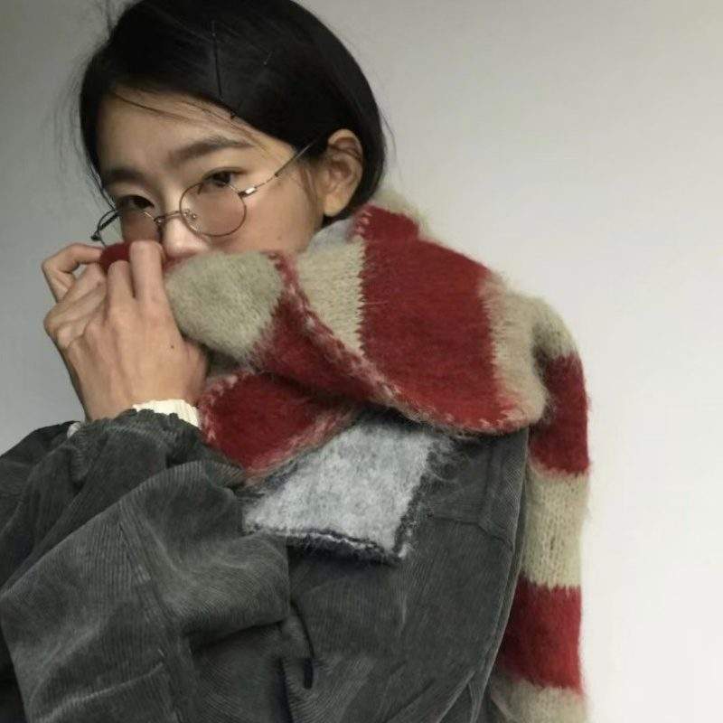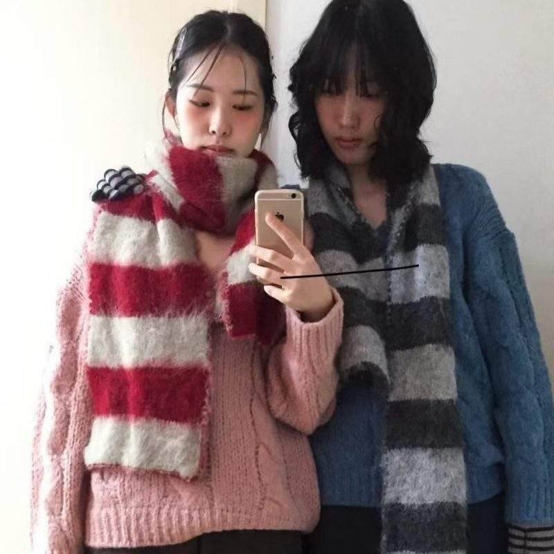 Be the first to review “Fluffy Mohair Striped Warm Neck Warmer | Soft Thick Winter Knit Scarf”