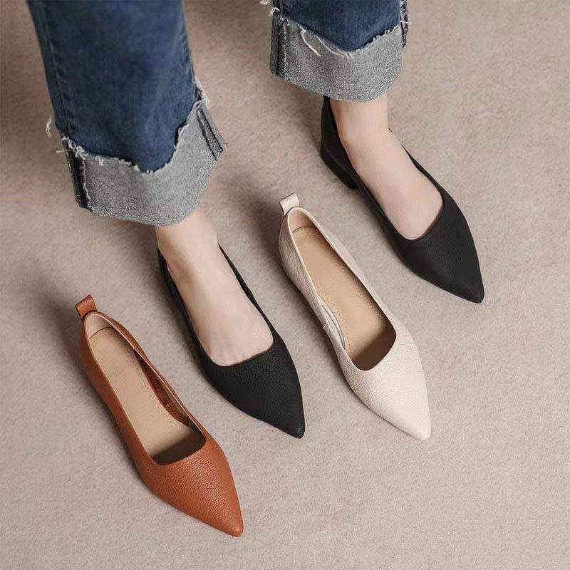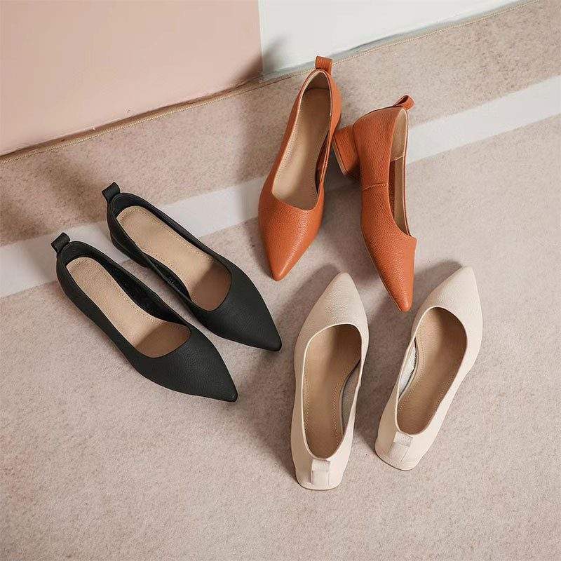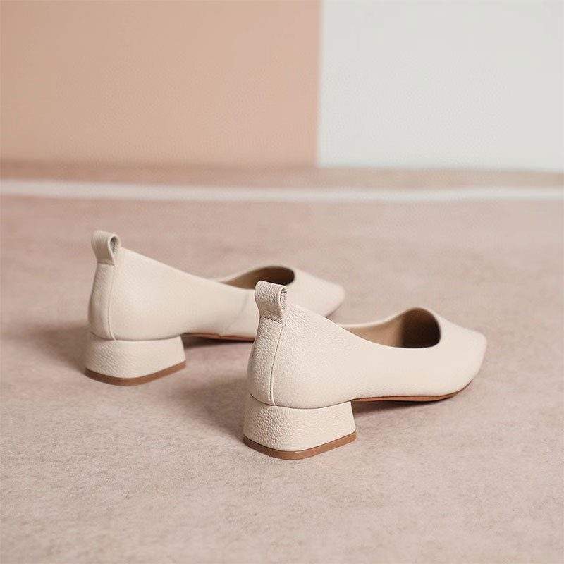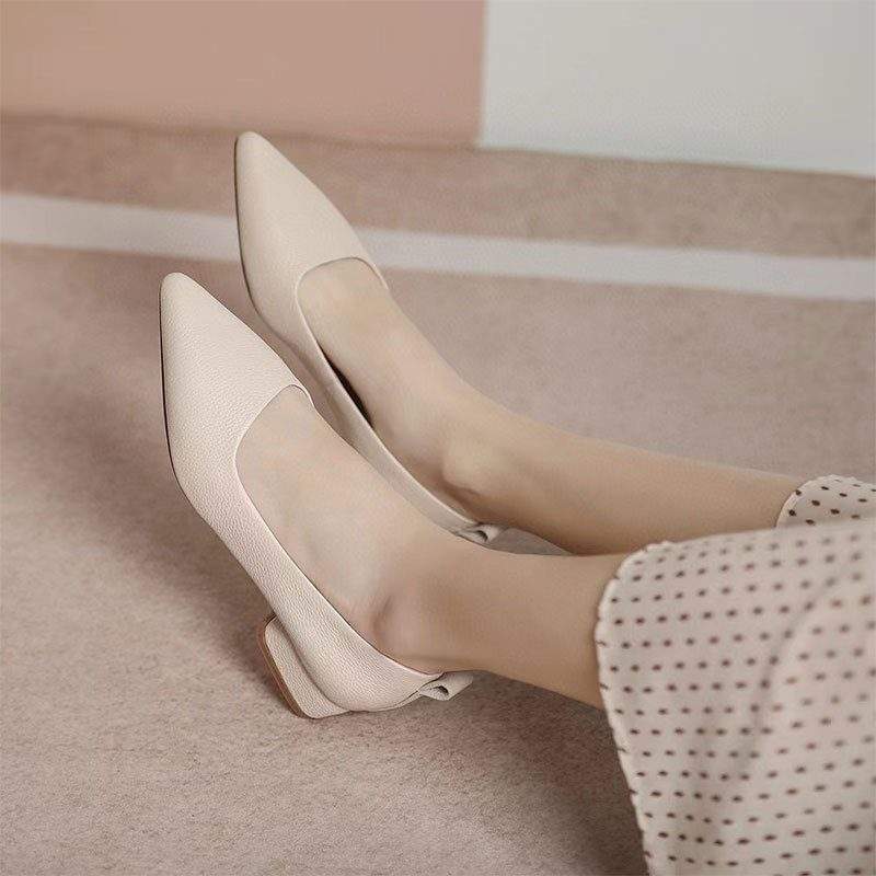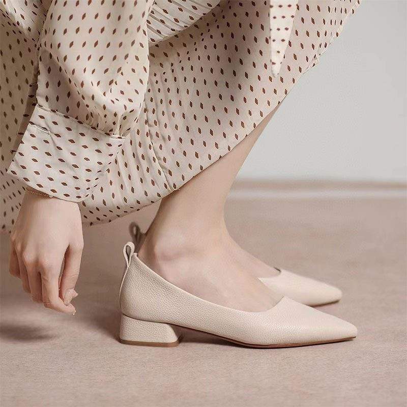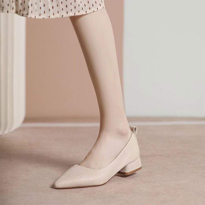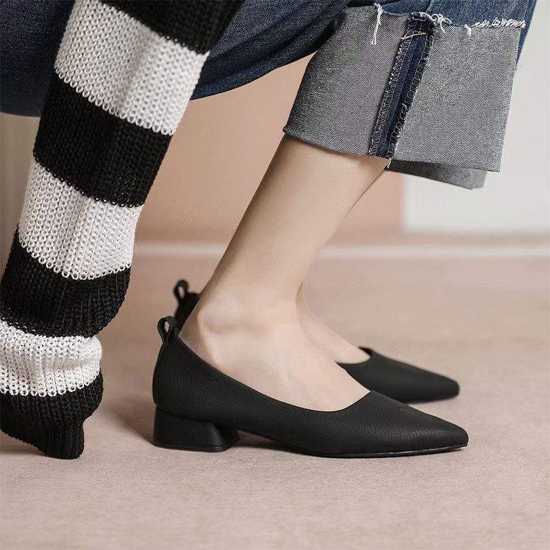Casual pointed-toe fashion one-foot chunky heel leather shoes