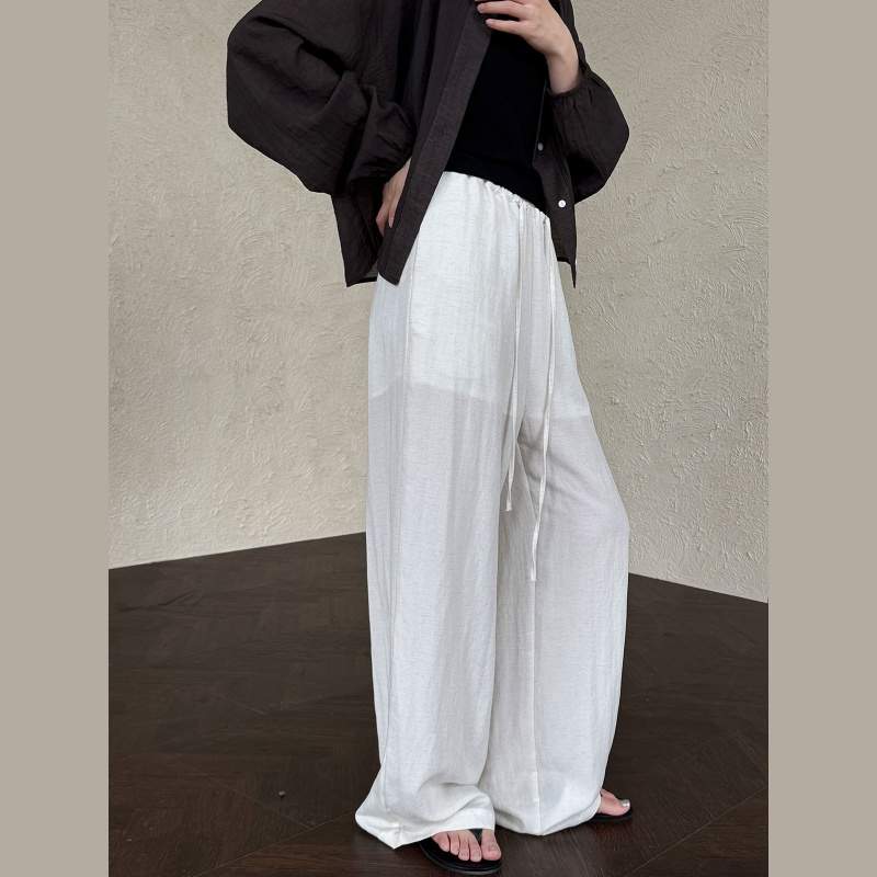 Linen Wide Leg Pants for Women | Elastic Waist Summer Trousers