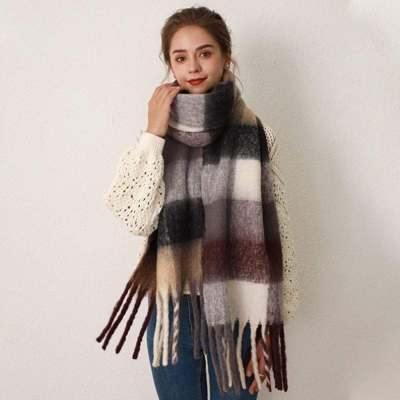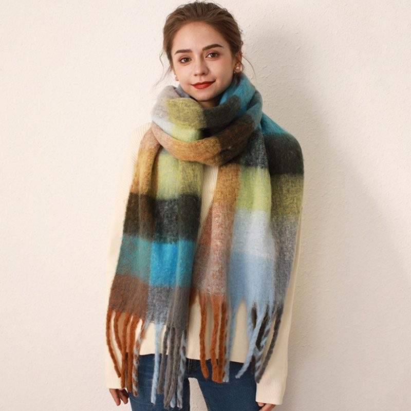 Plaid Faux Cashmere Mohair Scarf for Winter