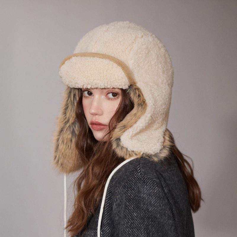 Sherpa Fleece Earflap Hat – Thick Winter Plush Warm Hat for Women