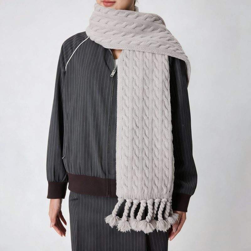 Solid Color Knit Cable Scarf Warm & Versatile for Fall Winter