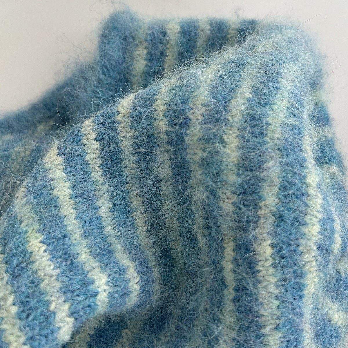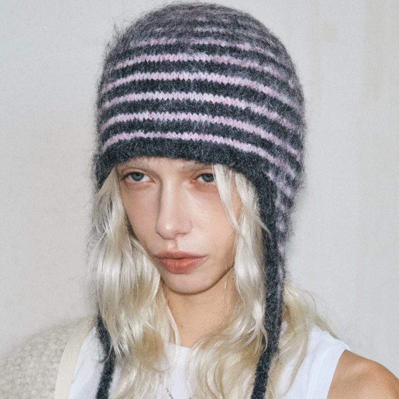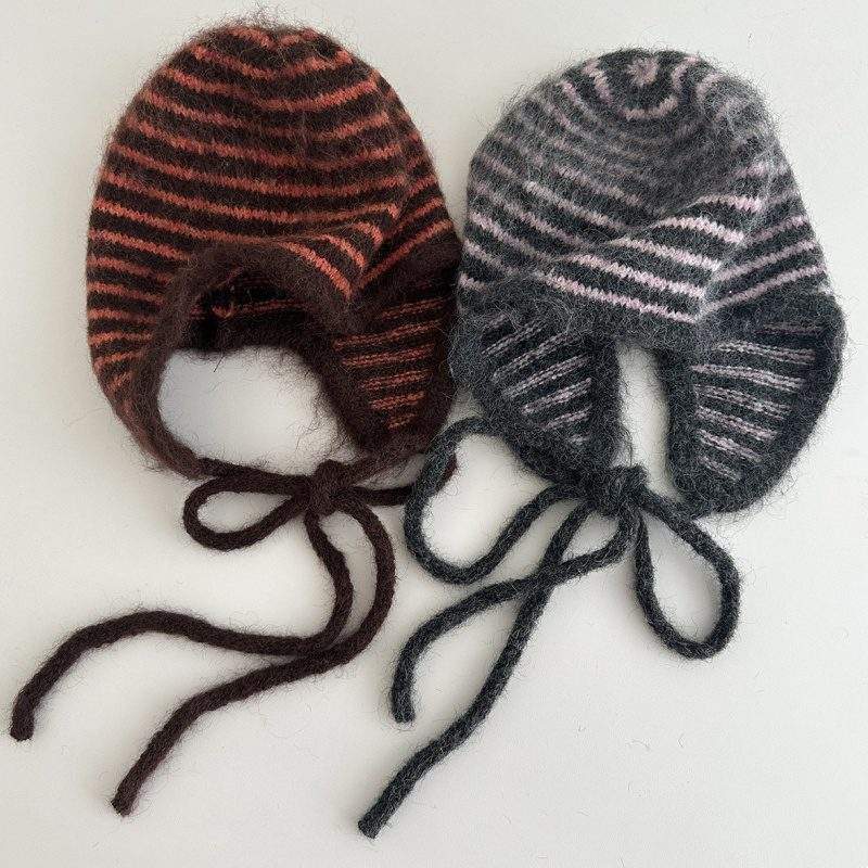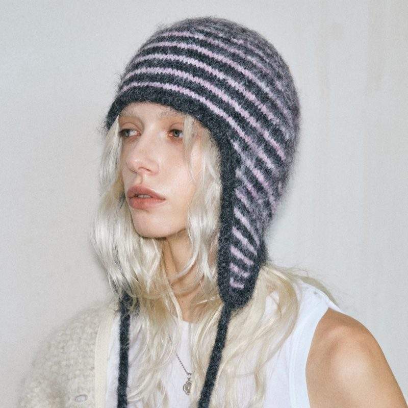 This striped knit tie-up earflap hat features a soft, warm knitted texture with secure tie straps for a snug fit. The earflap design blocks cold winds, while the thick construction enhances warmth for winter. Ideal for daily commuting, outdoor activities, and cold-weather wear.