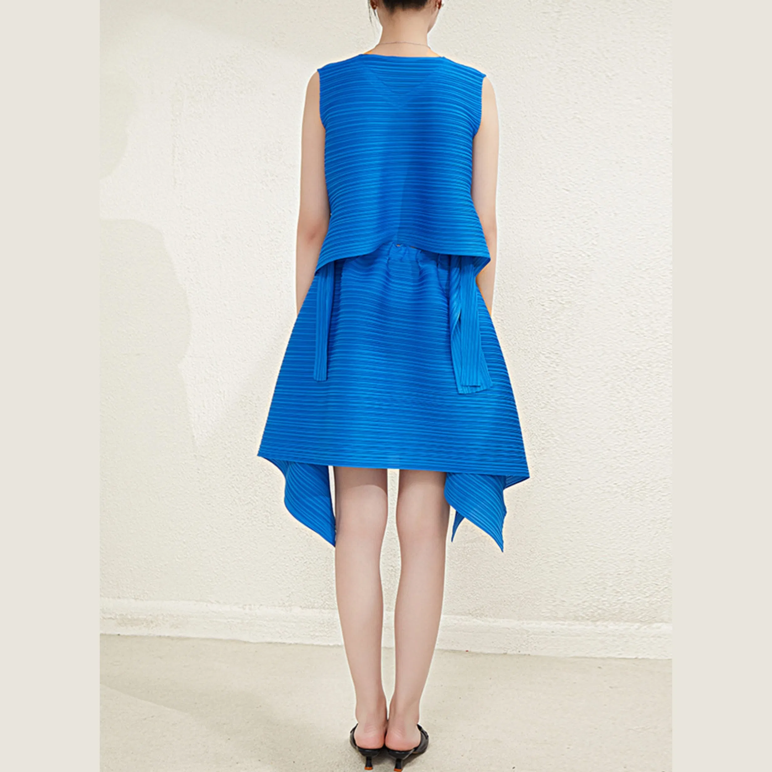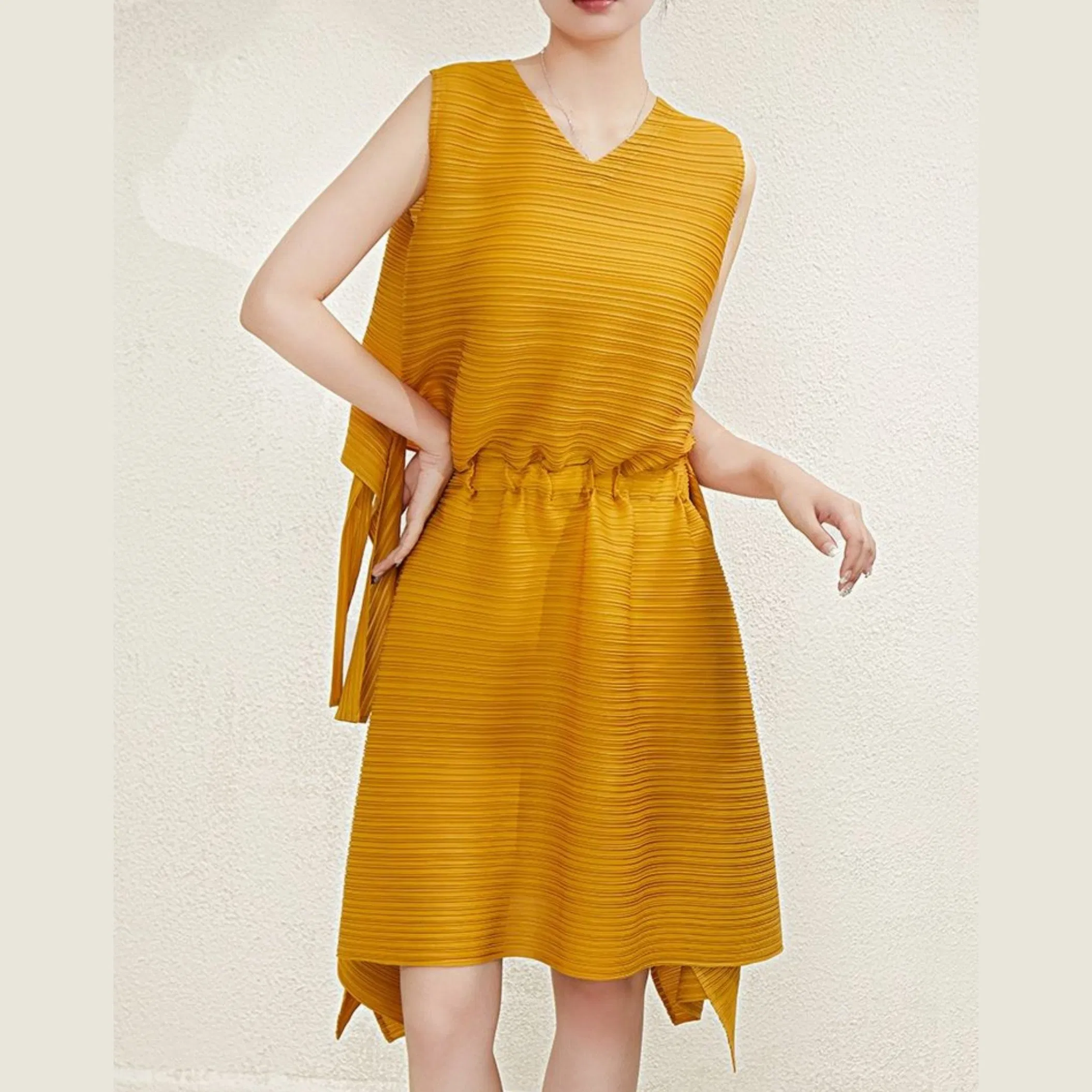 Summer High-End Pleated Sleeveless Backless Midi Dress for Women Custom pleated dress design