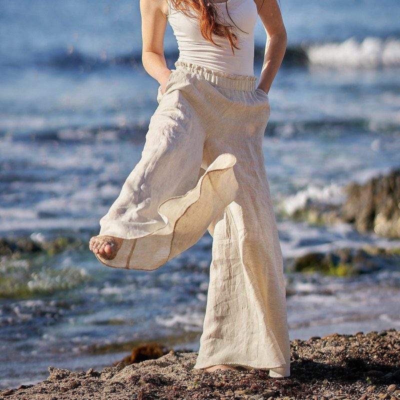 The Summer pure linen loose wide-leg pants are the perfect pair of pants for the summer. They are made from 100% linen, which is a breathable and comfortable fabric that will keep you cool and dry all day long. The pants have a loose fit and wide legs, which will give you a comfortable and relaxed look. They are also available in a variety of colors, so you can find the perfect pair to match your style.