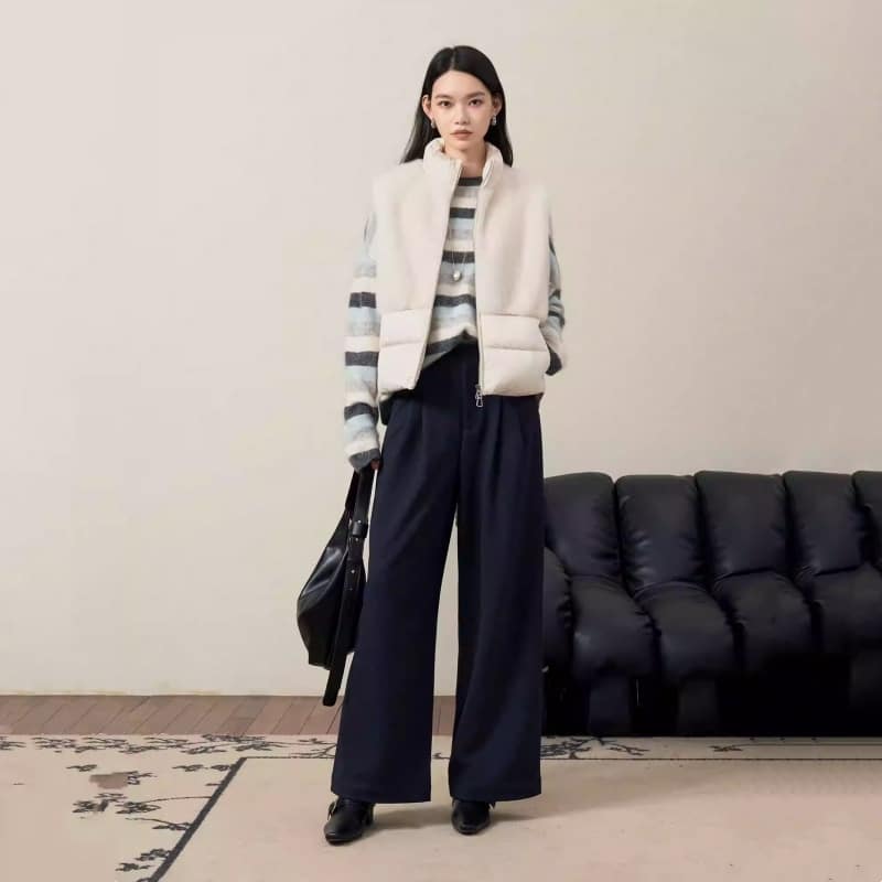 White Duck Down Eco Fur Patchwork Stand Collar Double-Zip Vest