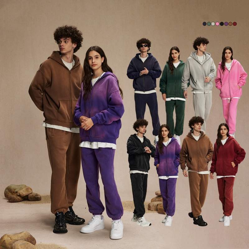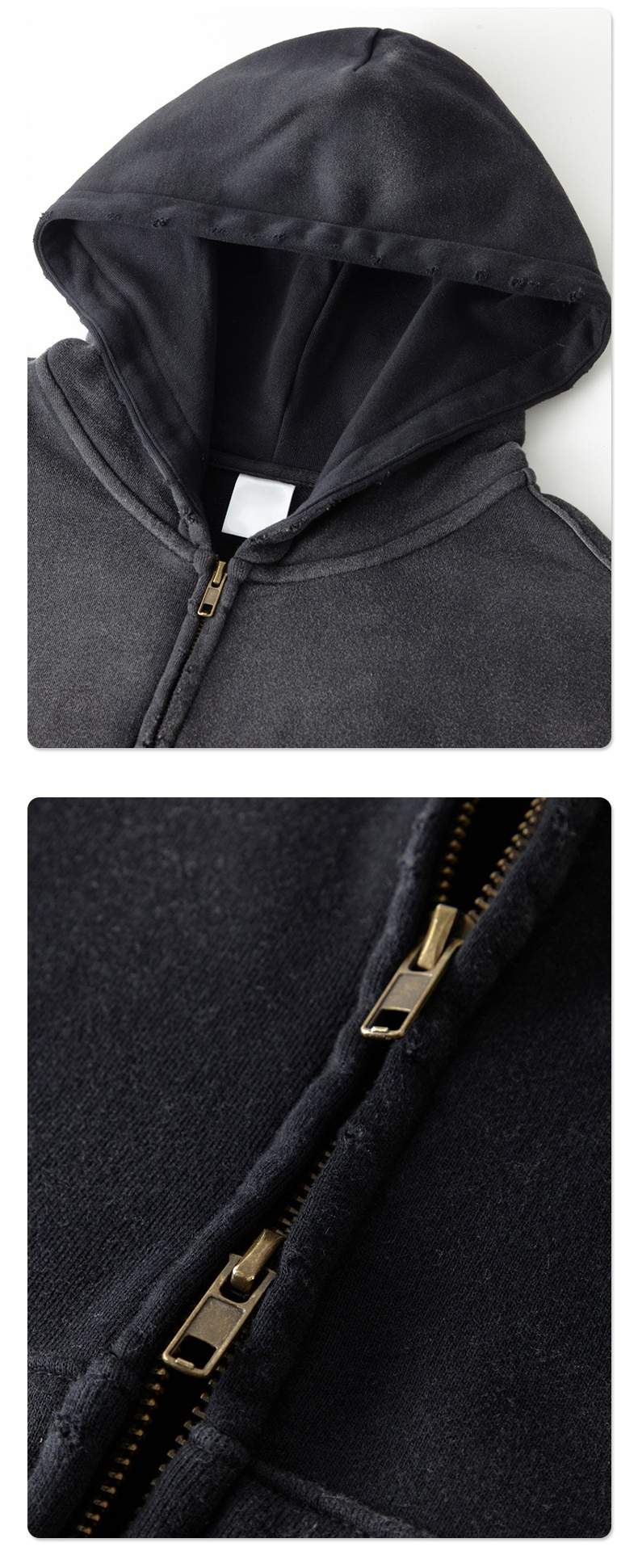 This winter thick washed vintage double zip hoodie is crafted from a durable cotton blend fabric and finished with a washed and spray-dyed distressed effect for a naturally vintage look. The thick material provides warmth and comfort, making it ideal for fall and winter wear.