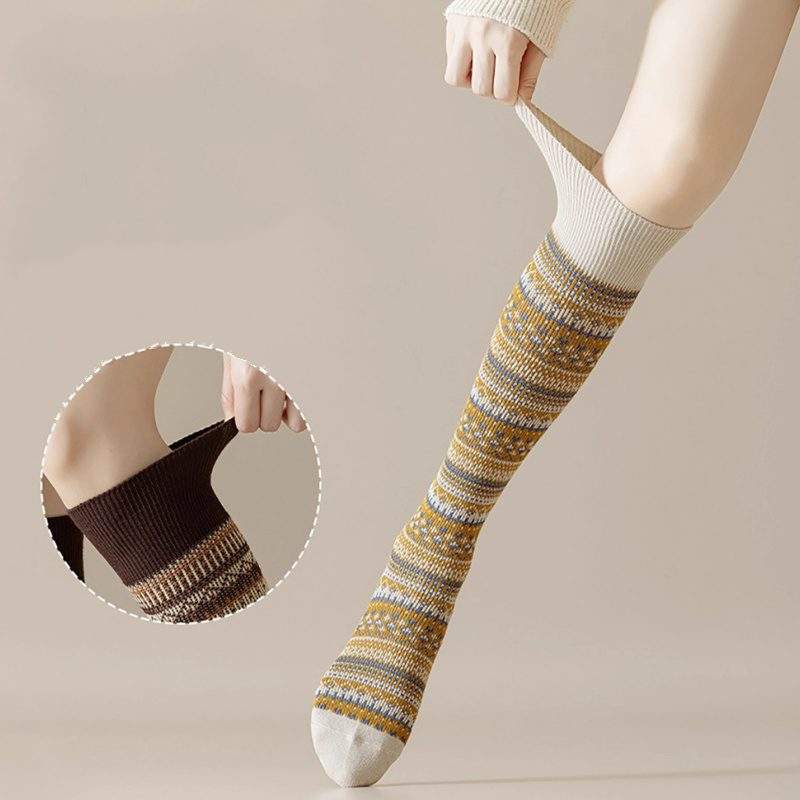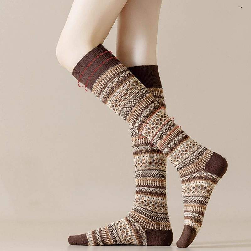 Winter Vintage Knee High Cotton Socks – Warm Long Socks