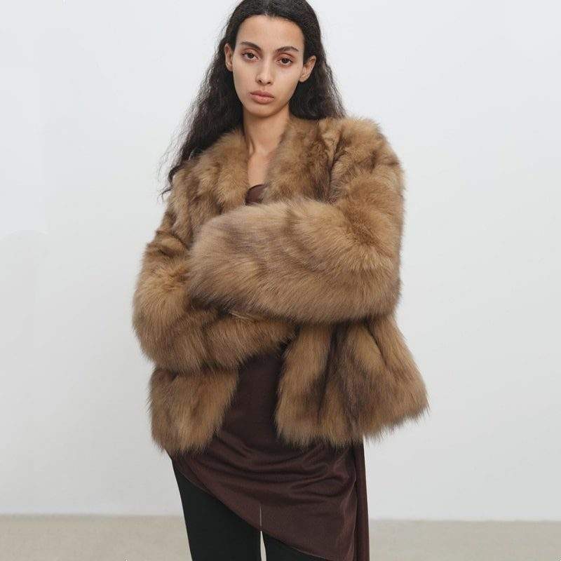 Women’s Faux Fox Fur V-Neck Short Coat