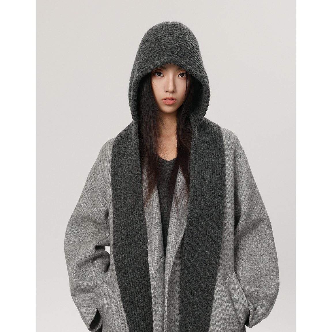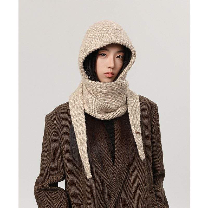 This integrated knit hat with a built-in scarf is crafted from soft, thick yarn, combining the functions of a hat and scarf in one convenient piece. The stretchy knit fits snugly around the head and neck, offering excellent wind protection. The fabric is cozy, skin-friendly, and resistant to pilling—perfect for winter commuting, everyday outfits, and outdoor activities.