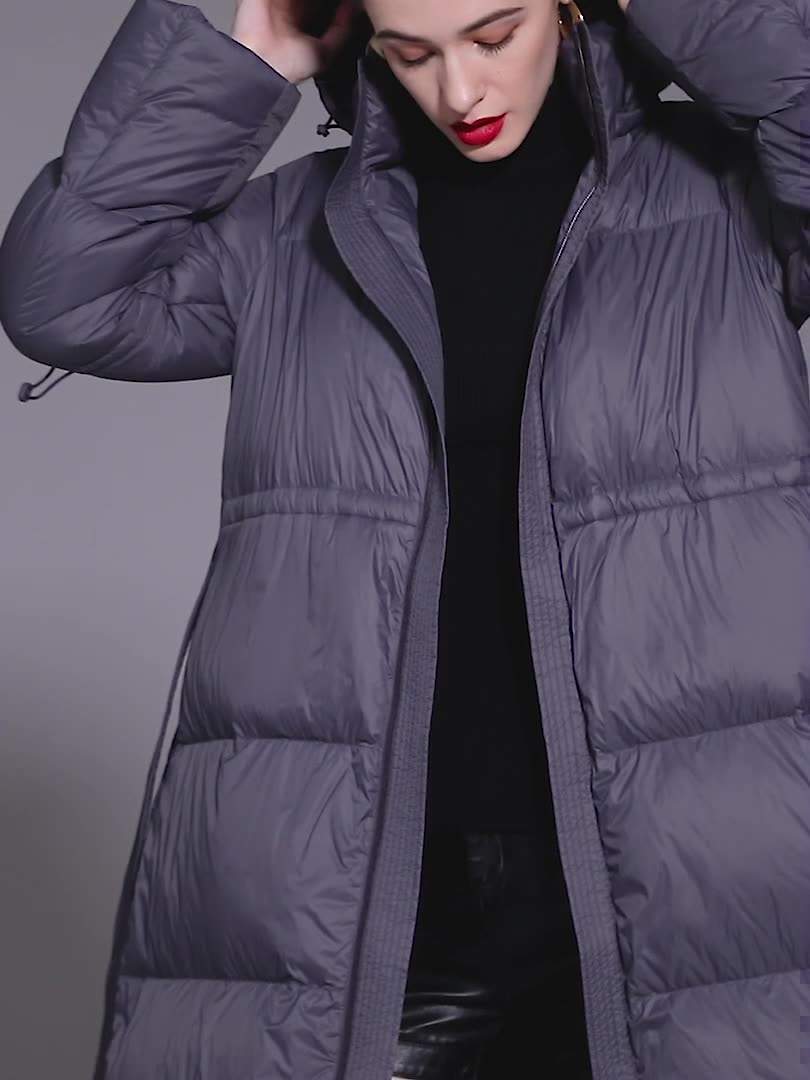 Ideal for everyday wear and outdoor adventures, this long 90% white duck down-filled puffer coat for women is the perfect combination of style, comfort, and warmth. Embrace the winter season in style with this fashionable and functional outerwear essential.