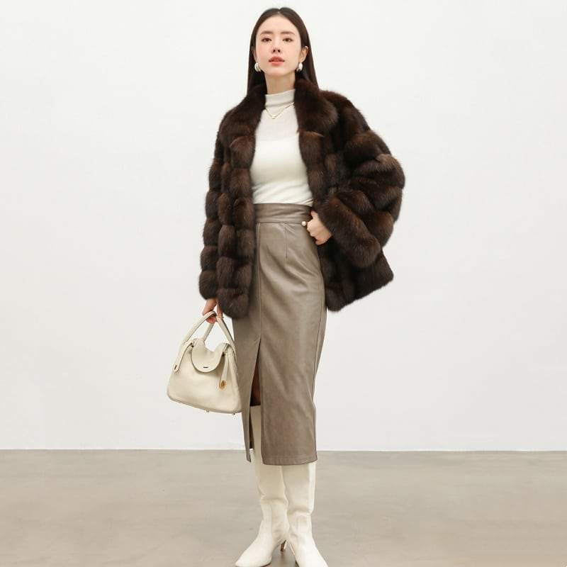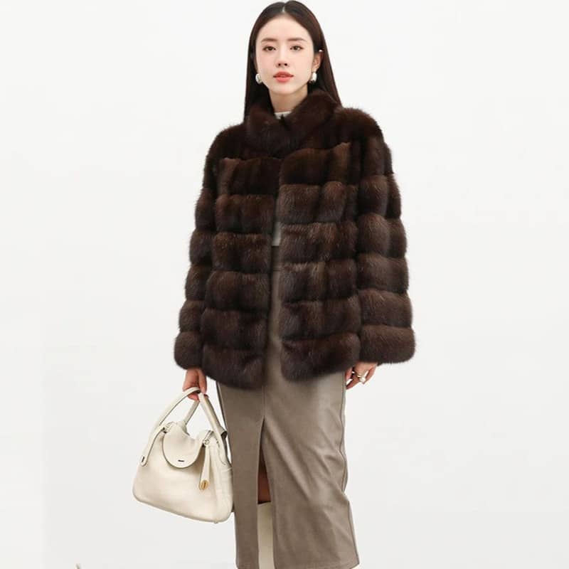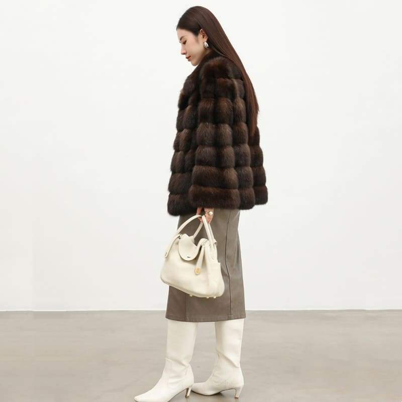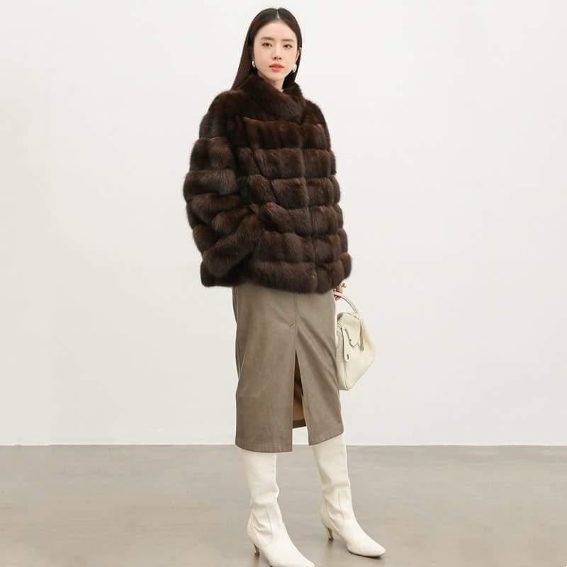 Women’s Mink Fur Short Coat | Thick Stand Collar Fur Outerwear