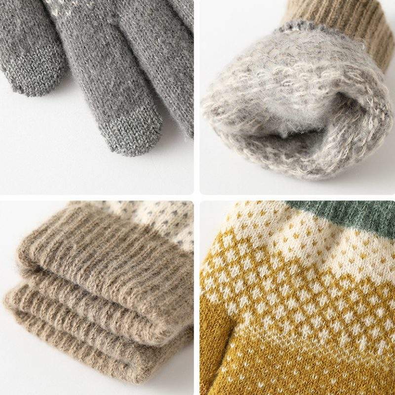 Women’s Thick Fleece-Lined Knit Gloves | Winter Warm Jacquard Finger Gloves