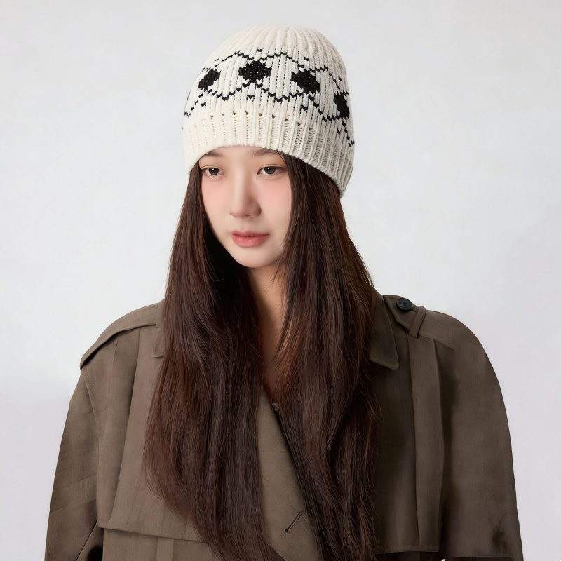 This women’s vintage jacquard knit beanie is crafted from soft wool yarn, offering warmth and comfort without bulk. The classic patterned design adds a refined retro touch, making it easy to pair with everyday winter outfits.