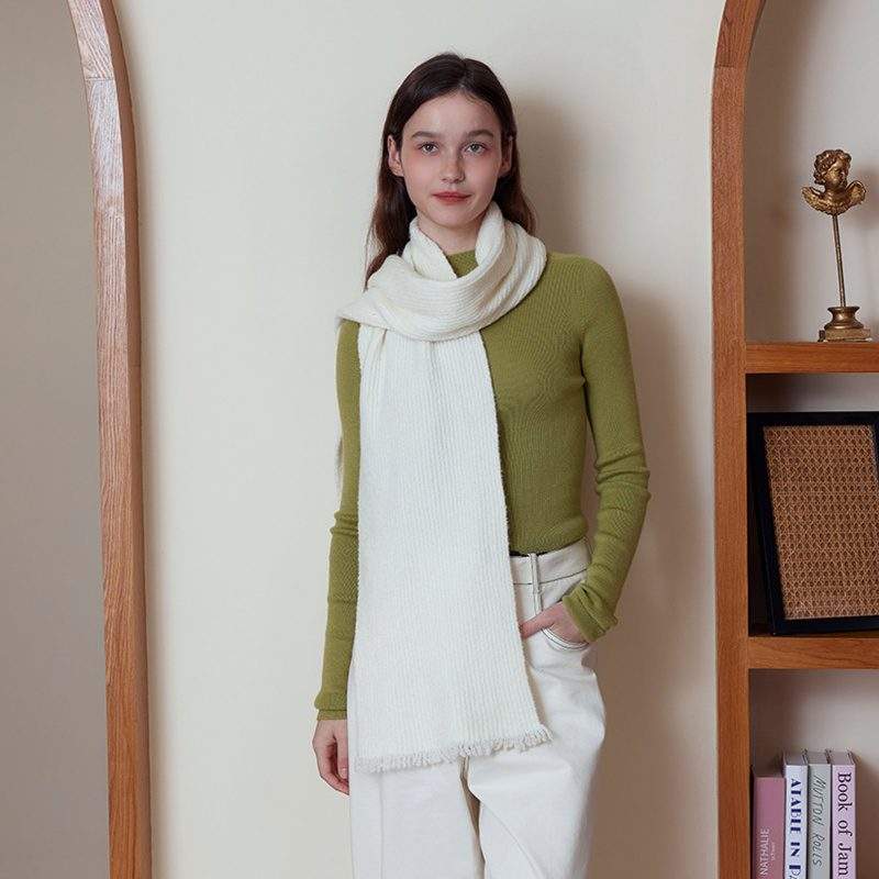 This wool blend solid knit scarf is soft, warm, and comfortable.