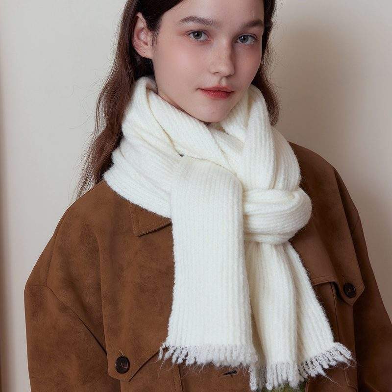 Wool Blend Solid Knit Scarf – Women’s Winter Warm