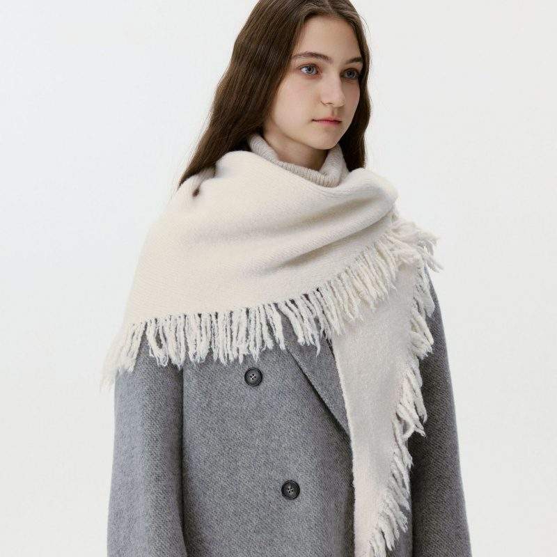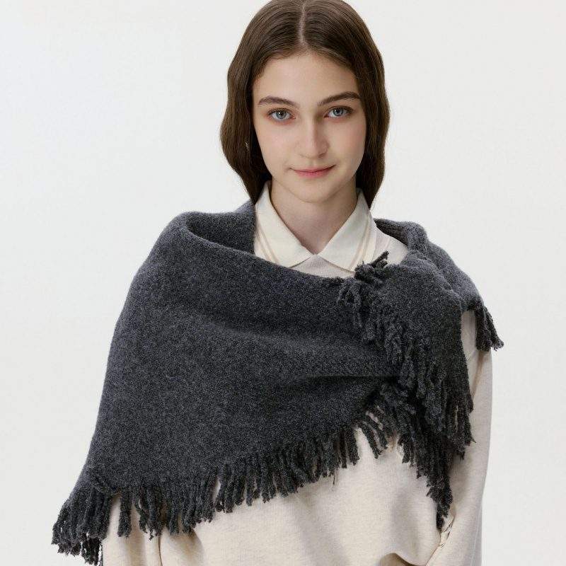Be the first to review “Wool Blend Solid Knit Triangle Scarf with Tassels”