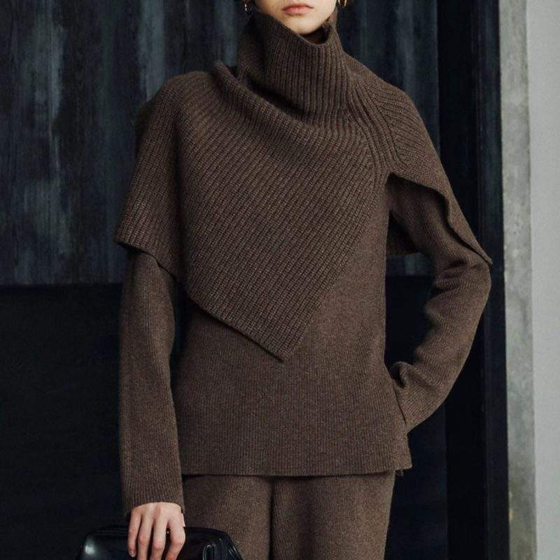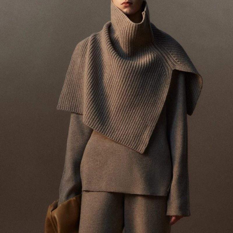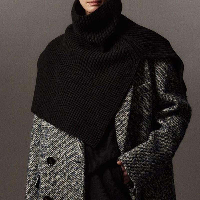 Wool High-Neck Split Knit Shawl – Warm Oversized Winter Neck Wrap