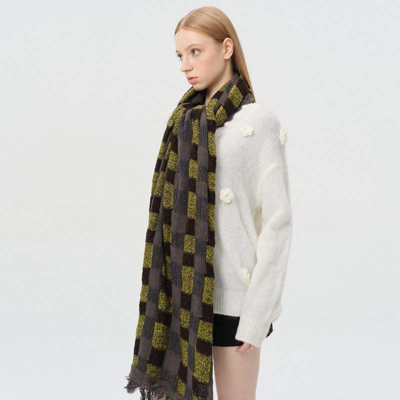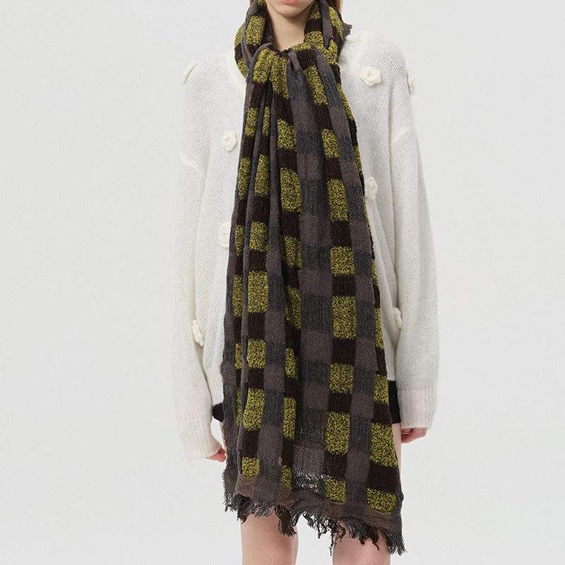 Wool Hollow Plaid Patchwork Scarf – Women Winter Warm Scarf